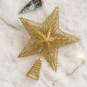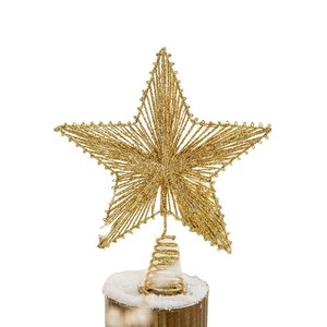 跨境热销圣诞金色闪粉铁艺树顶星圣诞树顶部星星装饰圣诞节装饰品