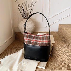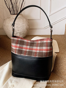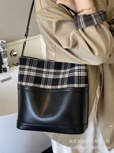 大容量包包女式2025新款小众格子超火通勤女包高级感单肩包水桶包