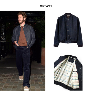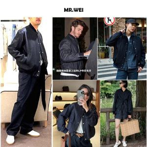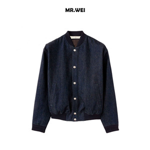 丹宁美学)38600元LP版“永久蓝环保染”立领飞行牛仔夹克外套情侣