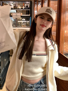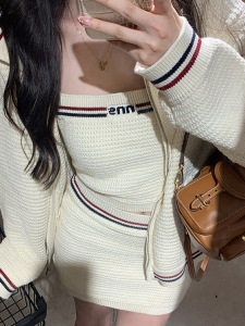 miu系穿搭小香风针织衫套装裙女25秋季新款辣妹气质慵懒风三件套
