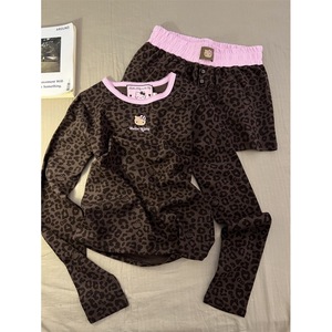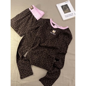 可爱Kitty印花豹纹长袖睡衣女秋季新款家居服大码长裤休闲两件套