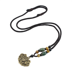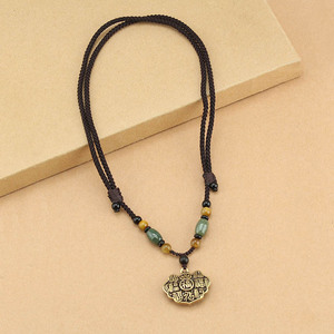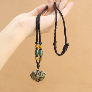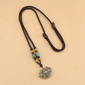 复古黄铜多福如意锁吊坠项链女百搭个性长款毛衣链简约民族风配饰