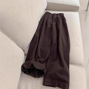 超好看美式复古咖色直筒阔腿裤女高腰显瘦遮跨梨形身材百搭休闲裤