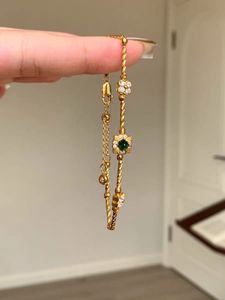 中古金色祖母绿水钻花朵手链ins风小众设计清冷感气质百搭手饰女