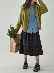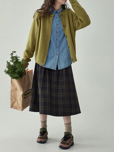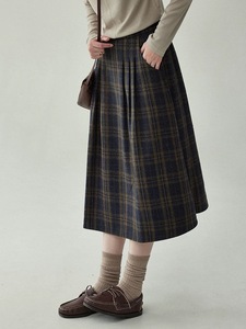 法式复古高腰压褶格纹半身裙秋冬显瘦毛呢百褶a字裙