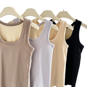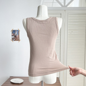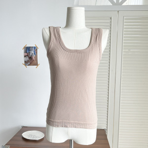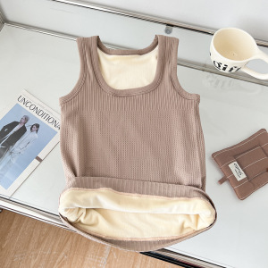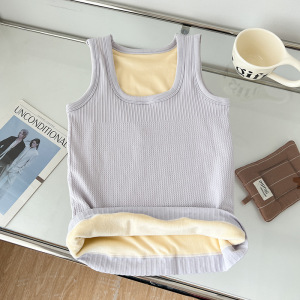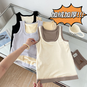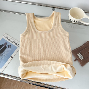 秋冬加绒加厚U领宽肩保暖背心女无胸垫修身打底无袖保暖马甲上衣