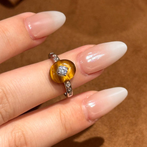 小红书爆款超光泽椭圆虎眼石镶嵌闪钻食指戒戒指耳环精致一件代发