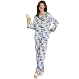 2025新款冰雪丝睡衣女轻奢风长袖长裤薄款蓝调格可外穿家居服套装