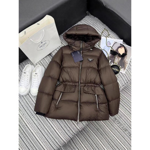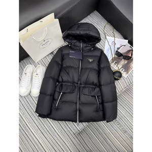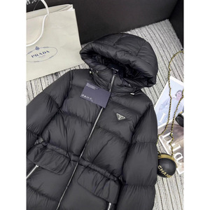 25新款P连帽羽绒服外套腰间抽绳设计经典的倒三角标皮牌点缀 轻盈