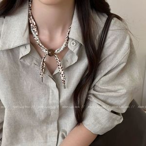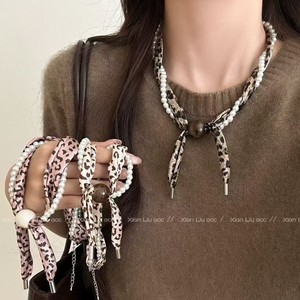 新中式民族风豹纹丝巾项链个性气质珍珠串珠叠戴颈链小众设计颈饰