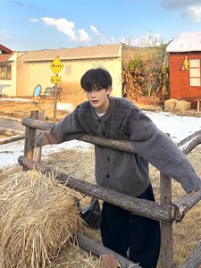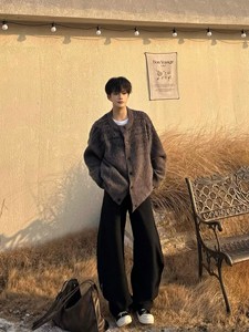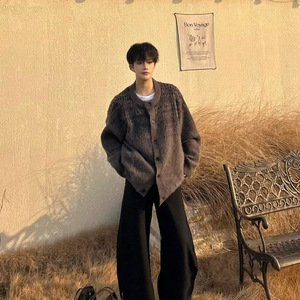 拼色设计感针织开衫男
