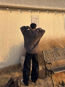 美式复古简约软糯拼色设计感针织开衫男女冬季慵懒风毛衣上衣情侣