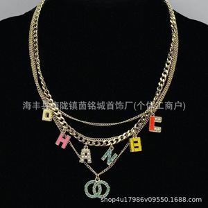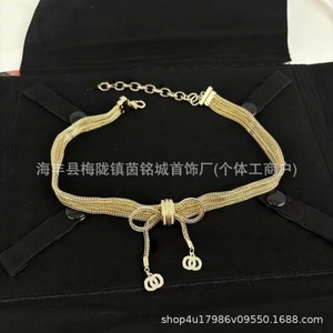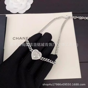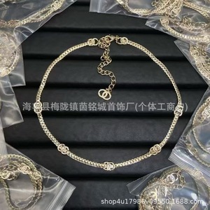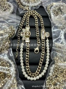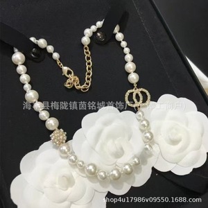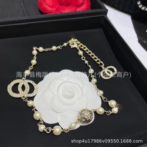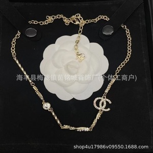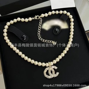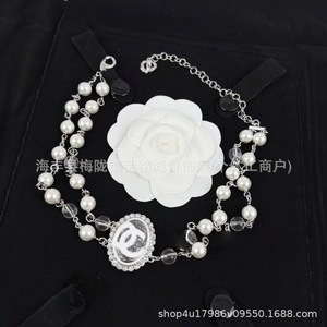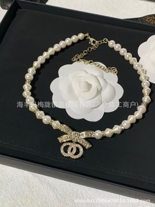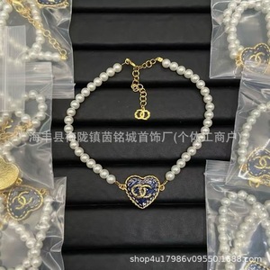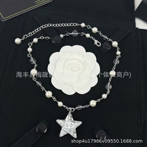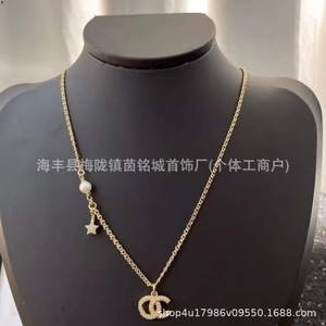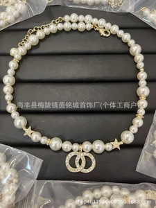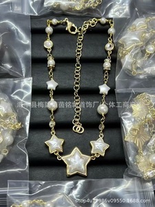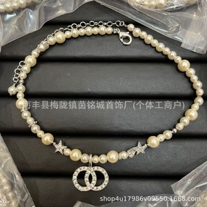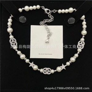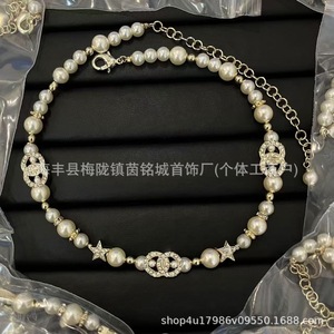 小香风新款双C满钻时髦珍珠链星星时尚百搭复古高级香奶奶锁骨链