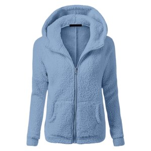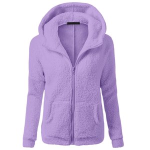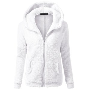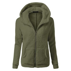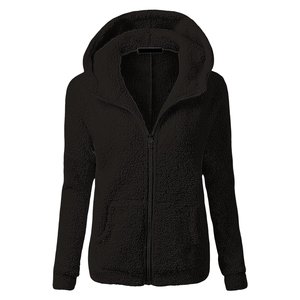2025亚马逊女士时尚纯色卫衣宽松连帽毛绒拉链外套上衣