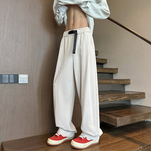 高级感斜纹休闲裤子男春秋季弯刀裤宽松潮流简约大码垂感直筒长裤