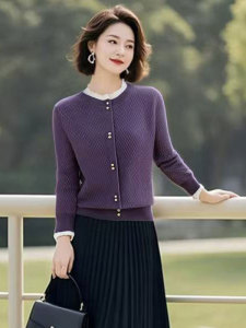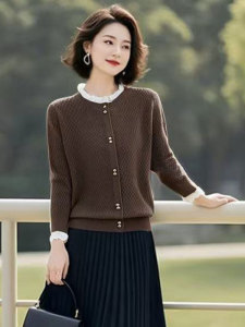 秋冬季新款花边领长袖针织衫上衣女打底衫时尚假两件毛衣打底开衫