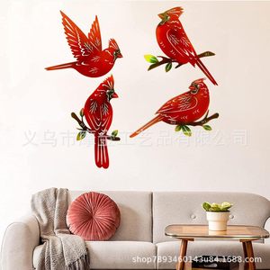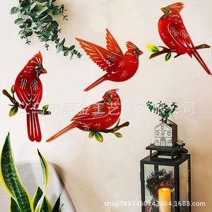 跨境亚马逊工艺品铁艺树枝鸟红衣教主客厅花园装饰摆件墙面装饰品