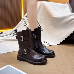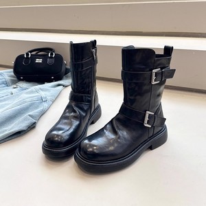 西部靴女2025秋冬新款真皮复古皮带扣马丁靴时尚百搭英伦风骑士靴