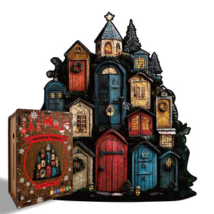 跨境木质圣诞节精灵门拼图玩具不规则异形拼图存钱罐礼物解压游戏