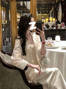2025年新中式国风套装女秋季高级感重工珠绣外套吊带裙套装 N9074