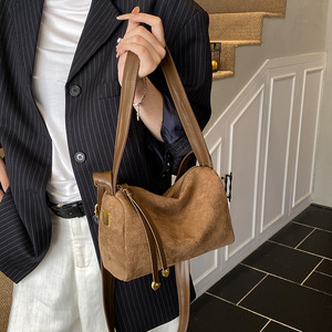 小众复古质感腋下包包女2025新款麂皮绒枕头包简约百搭单肩斜挎包