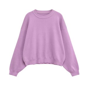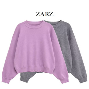 ZARZ 自制 欧美风 新款女装 洋气纯色螺纹圆领长袖针织衫9598187