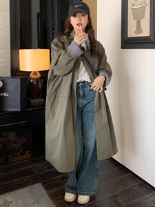 港风复古工装风衣外套女春秋日系小个子设计感宽松中长款气质大衣