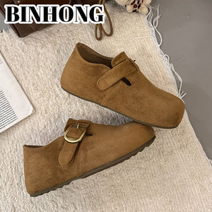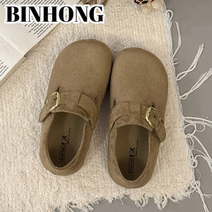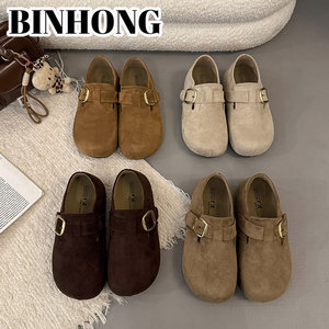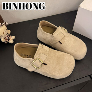 真皮厚底内增高勃肯鞋女一脚蹬懒人2025秋季新款复古休闲豆豆单鞋