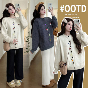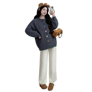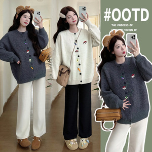 实拍厚实大板型毛衣开衫2025秋季新款慵懒风秋冬针织衫孕妇装外套