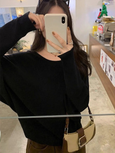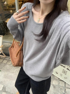 慵懒蝙蝠袖简约百搭T恤女秋季2025新款宽松显瘦休闲纯色内搭上衣