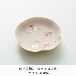 糯米釉堆雕纯手绘梅花圆形花边杯垫隔热防烫家用茶具配件小零件