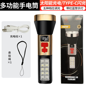 跨境新款锂电手电筒长续航LED工业电筒便携小巧可充电强光电筒