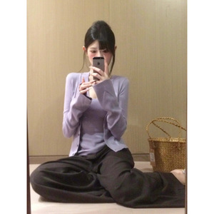 十三行女装针织开衫外套女秋季长袖薄款挂脖背心紫色设计感两件套