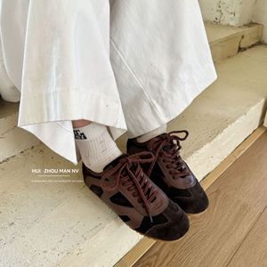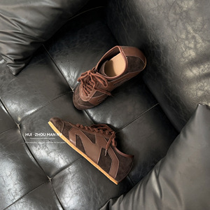 真皮复古芭蕾德训鞋女2025秋季新款百搭拼色休闲运动鞋增高阿甘鞋