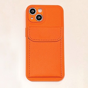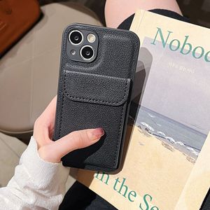荔枝纹适用苹果17promax手机壳卡包iphone15简约12素皮全包保护套