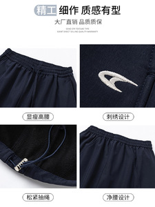 藏青色工装裤女秋季2025新款宽松直筒休闲速干小个子刺绣阔腿裤