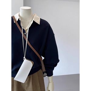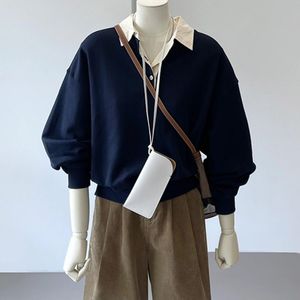 松弛感polo领藏青色假两件卫衣女早秋款翻领拼接宽松套头长袖上衣