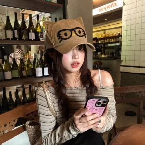 批发外贸韩系辣妹一字肩宽松条纹长袖T恤女2025春秋季新款打底衫