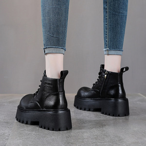 真皮厚底马丁靴女秋冬新款头层牛皮复古短靴系带松糕底增高德比鞋
