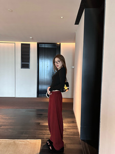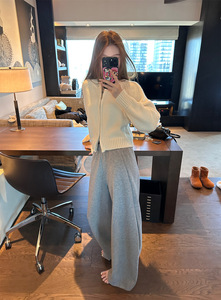 蝶宝嘻 480g香蕉卫裤 秋冬高腰垂感休闲运动米白色直筒阔腿长裤女