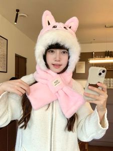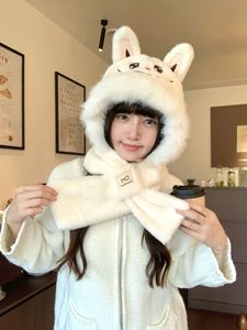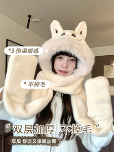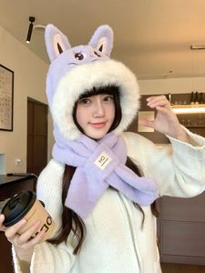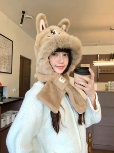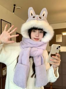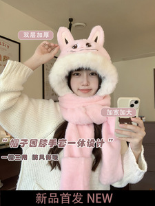 2025新款拉布布围巾帽子手套一体三件套保暖加厚可爱耳朵毛绒防寒