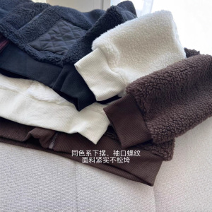 alo秋冬棕色羊羔毛连帽短外套加厚保暖运动休闲立领拉链夹克上衣