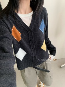 濮院2025韩系中高端全羊毛针织衫秋季上新撞色提花开衫长袖毛衣女