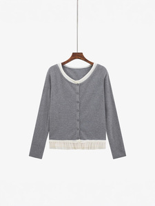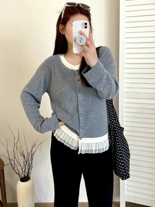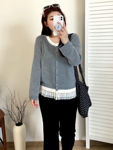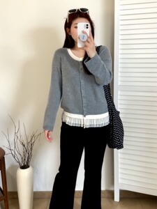 【包邮】大码女装假两件上衣女拼接外套2025秋胖mm宽松针织开衫