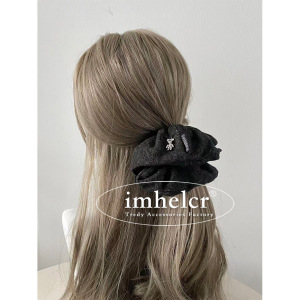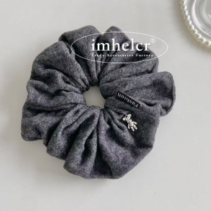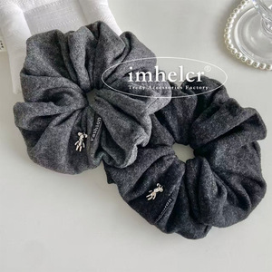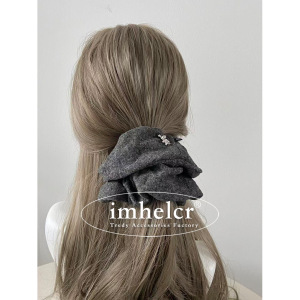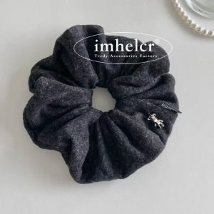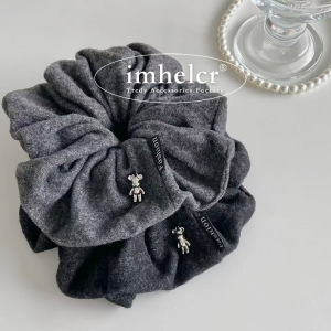 秋冬新款灰色毛呢小熊吊坠大肠发圈柔软质感韩系不伤发头绳发饰