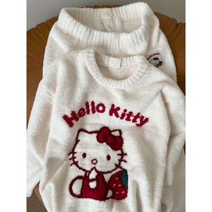 软糯少女可爱kitty猫半边绒睡衣女款秋冬保暖长袖长裤家居服套装