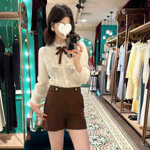 电影同款2025秋冬新款时尚设计感蝴蝶结荷叶领蕾丝衬衫上衣