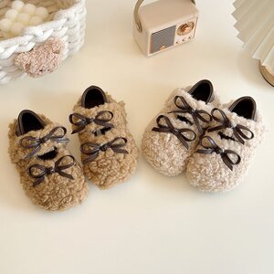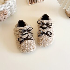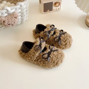 韩版女童毛毛鞋冬季新款儿童蝴蝶结二棉公主鞋保暖宝宝加绒豆豆鞋