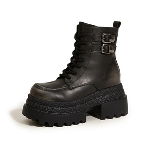 厚底马丁靴女2025秋冬新款小个子内增高女鞋百搭擦色复古短筒靴子