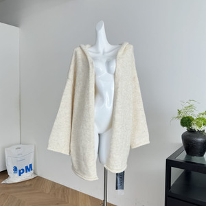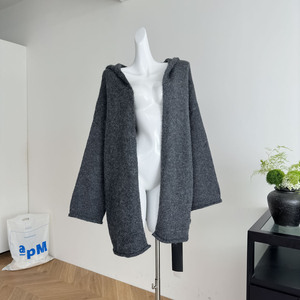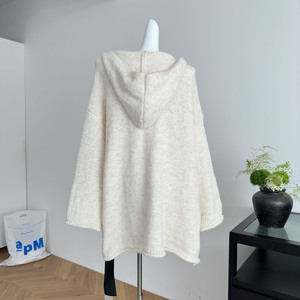 盘盘软绵女友慵懒羊毛卷边连帽毛衣外套女秋季针织开衫上衣